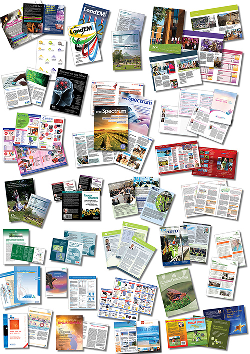 Just a few examples showing a snapshot of the kind of projects I've produced. Ranging from flyers to exhibition materials to brochures, peer-reviewed journals, books and catalogues.